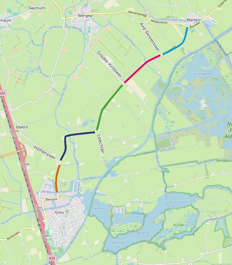 De weg tussen Grou en Warten is aan groot onderhoud toe. Deze is onderzocht naar de staat van onderhoud en daar heeft de Gemeente Leeuwarden advies over gekregen. Dit betekent dat de Gemeente Leeuwarden op sommige delen alleen de deklaag asfalt vernieuwen tot soms de gehele asfaltconstructie. Over de gehele lengte komt een nieuwe bermverharding.