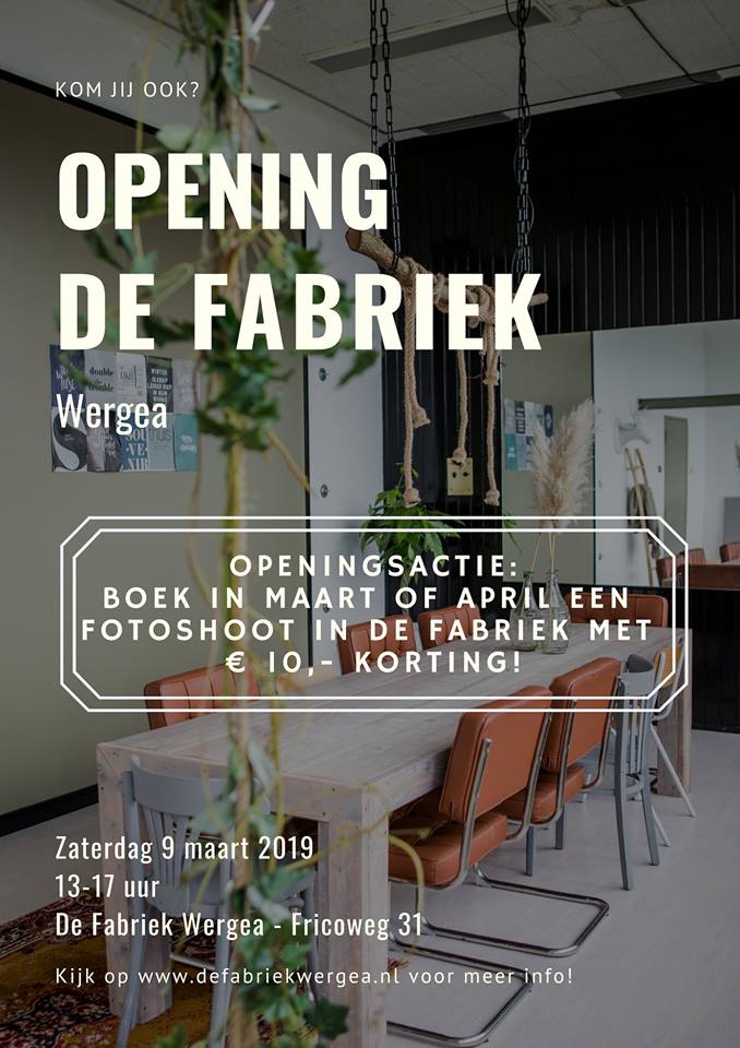 Opening van De Fabriek zaterdag 9 maart, 13:00 - 17:00 uur, klik hier of op de poster voor meer informatie.