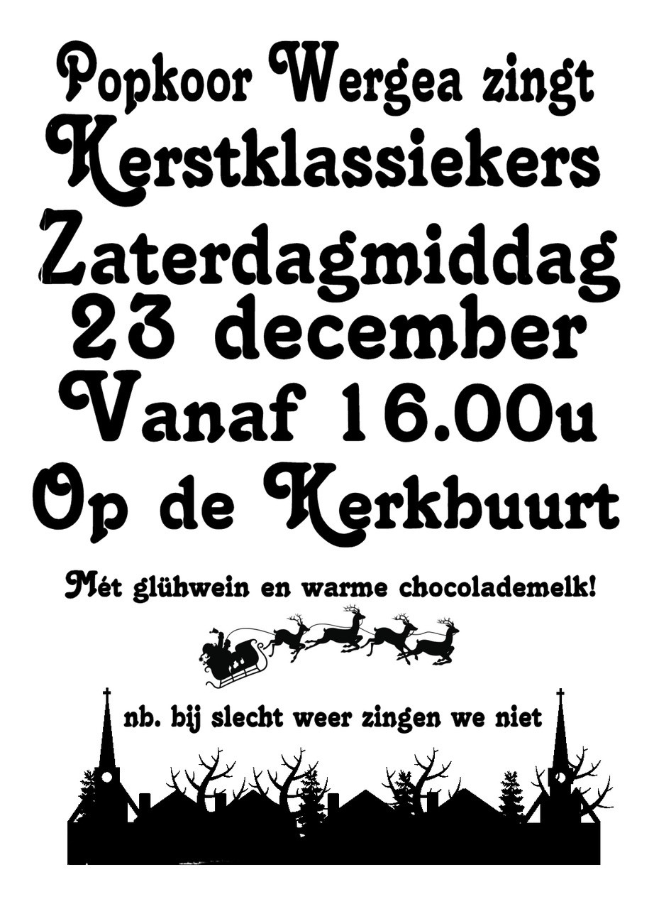 We zingen vanaf 16:00 uur op de Kerkbuurt in Wergea. En we hebben lekker warme drankjes!
