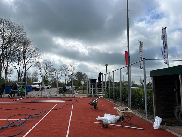 De werkzaamheden aan de nieuwe tennisbanen gaan nu snel en ondanks een aantal tegenslagen kunnen we melden dat ze klaar zullen zijn voor het nieuwe seizoen! We zijn erg blij en trots dat het gelukt is op deze korte termijn dit allemaal te realiseren. Met deze nieuwe banen (en de eerder vervangen verlichting) kunnen we als vereniging de komende 10 tot 15 jaar weer vooruit.