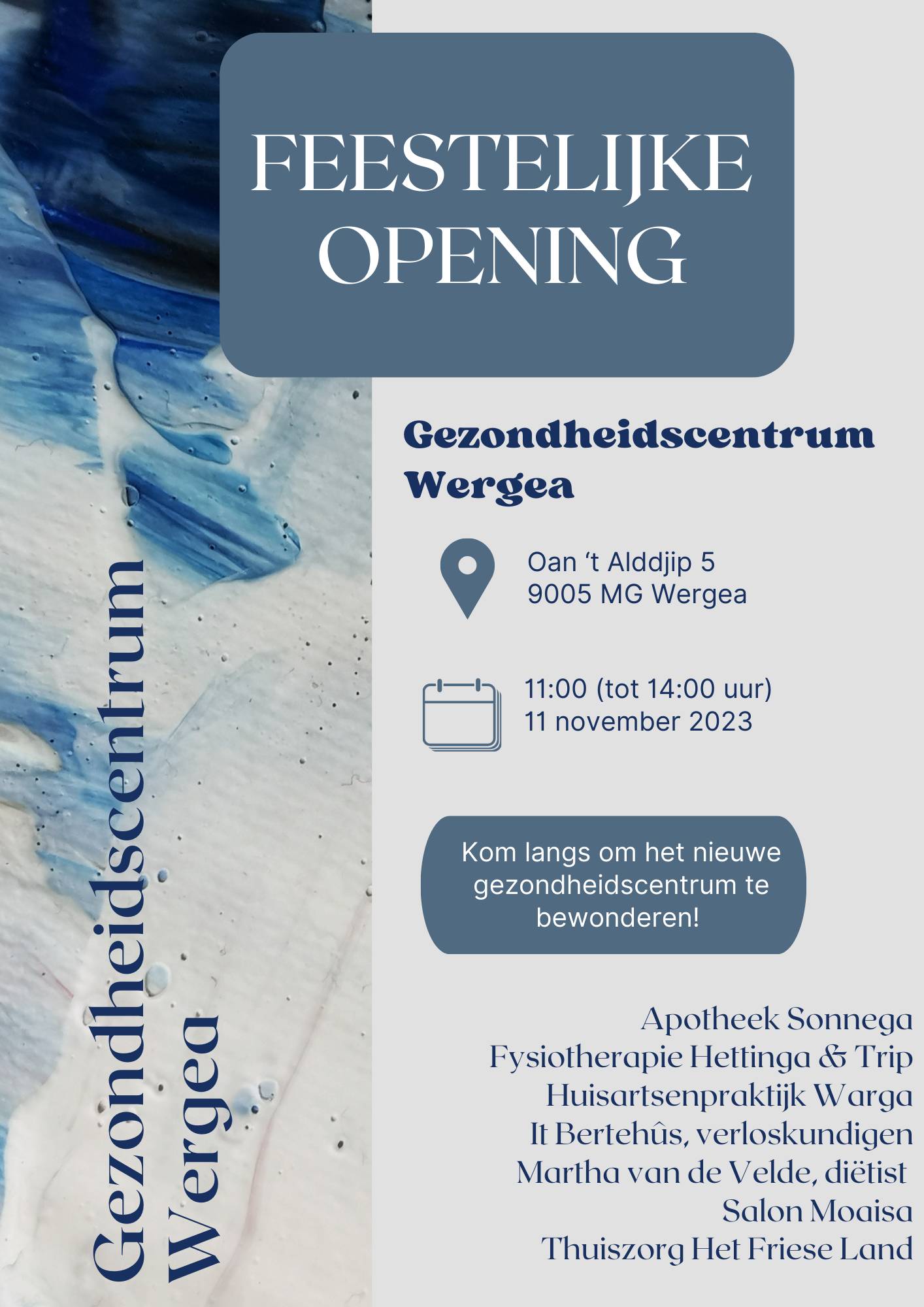 Op 11 november 2023 is iedereen van 11.00 uur tot 14.00 uur van harte welkom om het nieuwe gezondheidscentrum te bewonderen!